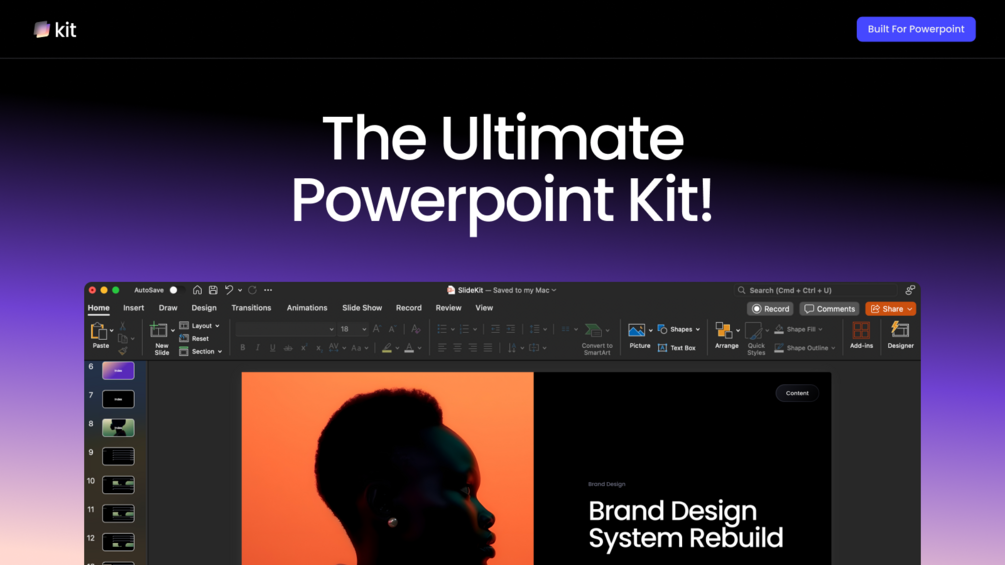 Slide Kit is a beautifully designed presentation kit for Powerpoint and Figma that contains 238 slide variations. We built this with the intent of being the only presentation kit that you’ll every need.